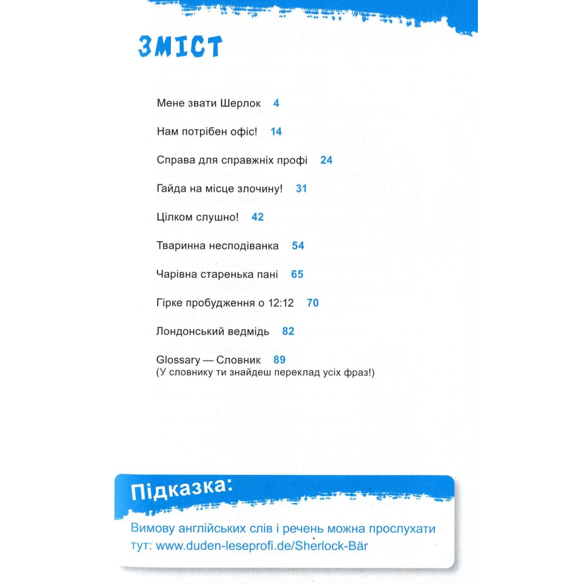 Attention, please! Ця захоплива книжка — справжній скарб для батьків і дітей. Детективні пригоди, цікаві головоломки, вивчення перших слів і висловів англійською для читачів молодшого шкільного віку, а також справжня дружба й неймовірні пригоди — усе це на її сторінках. Майже всі люди на Землі знають, хто такий Шерлок Голмс. Але не всі знають, що в нього є не менш талановитий нащадок — Шерлок Голмс п'ятий. Як і відомий пращур, маленький Голмс зустрічає «свого» Ватсона, випробовує його на роль помічника — і згодом хлопці засновують детективну агенцію. Та їхня історія не суто класичний детектив, а справжній мозковий штурм для читачів, який сприятиме розвитку логічного мислення, роботі у команді та формування правильних цінностей.