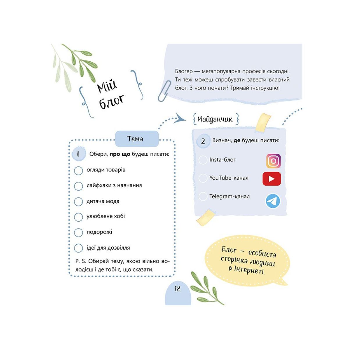 - блакитні сторінки допоможуть отримати різні скіли – практичні навички, що стануть у пригоді в сучасниму житті;