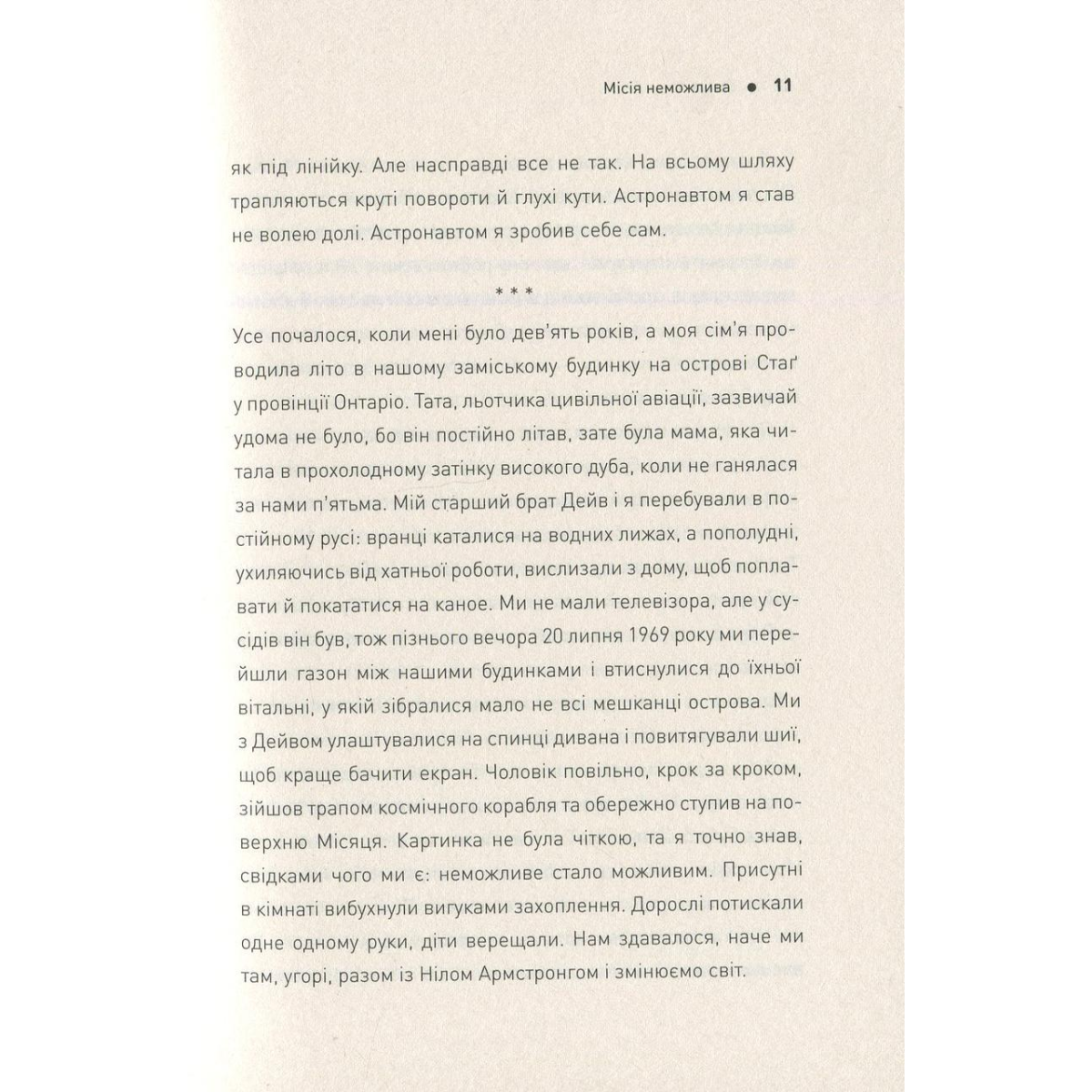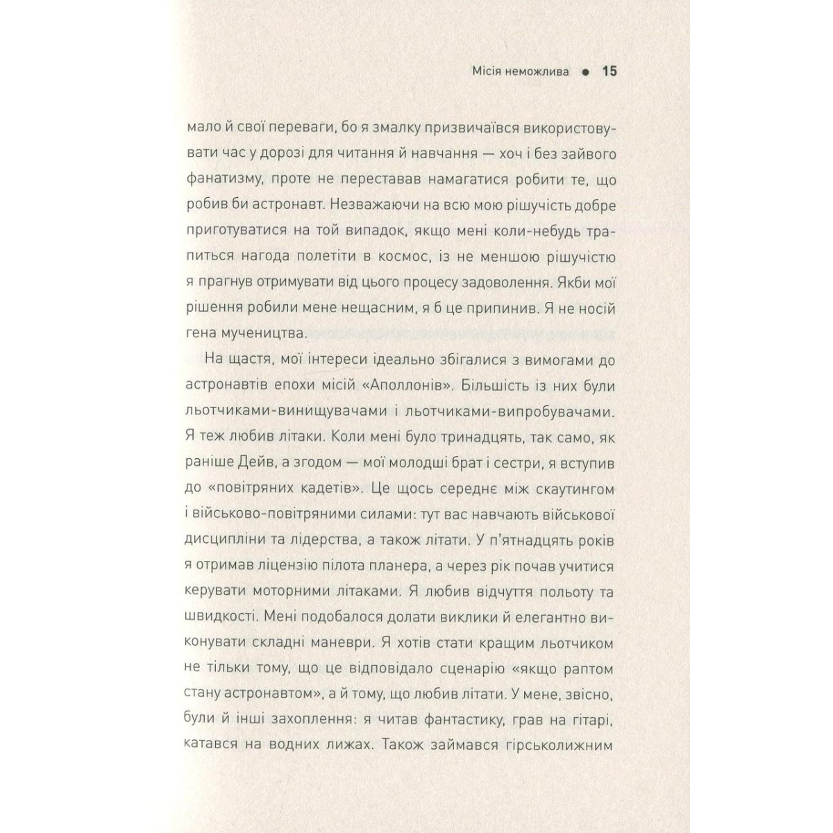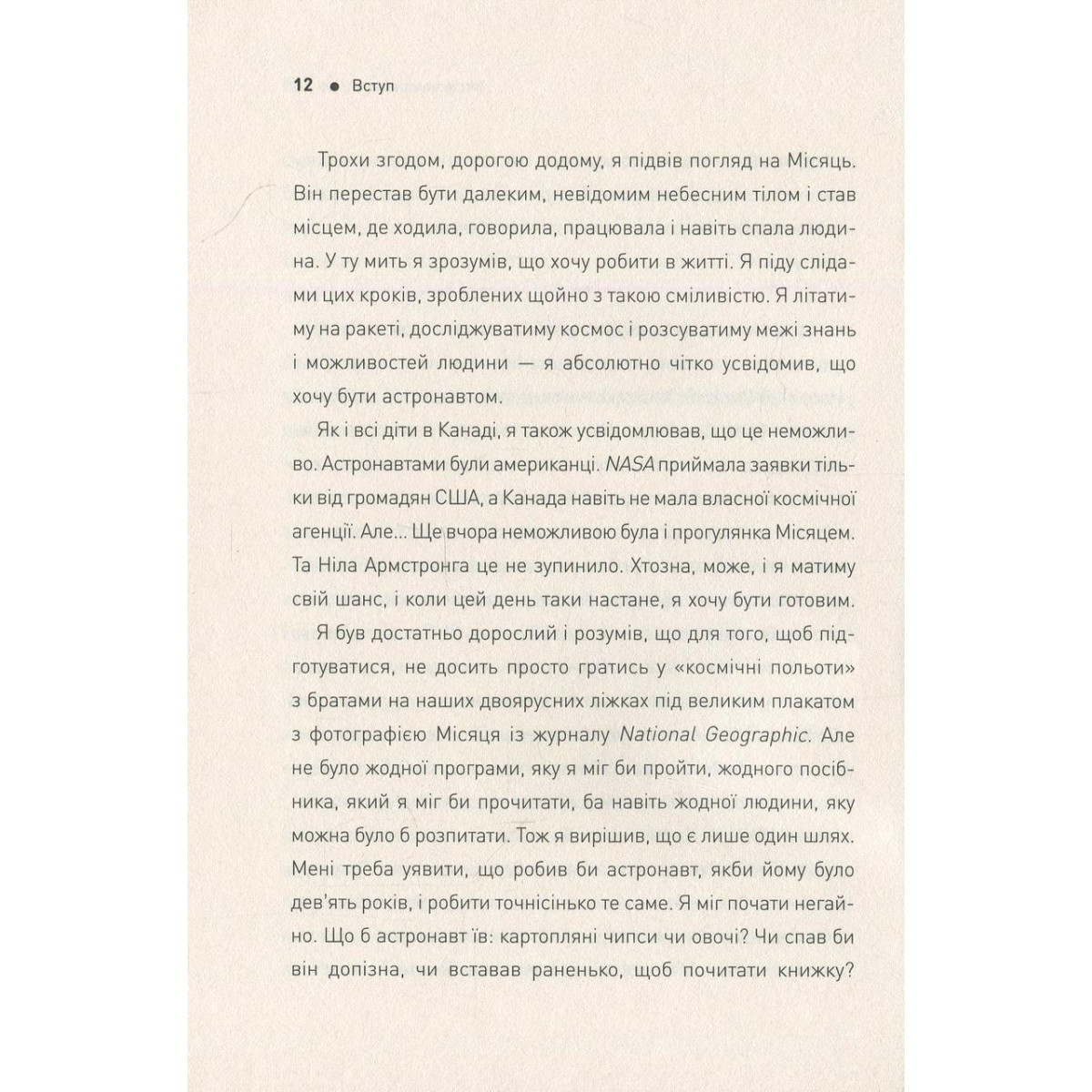 Кажуть, що згори завжди видніше. Перш ніж давати поради щодо життя на Землі, канадський астронавт Кріс Гедфілд тричі побував у космосі, провівши там загалом майже 4000 годин. За цей час він устиг взяти участь у спорудженні МКС, ледь не втратив зір і став справжньою зіркою YouTube, виконавши у стані невагомості пісню Девіда Бові «Space Oddity». У посібнику астронавт розповідає про власний шлях до зірок: від дитячої мрії, що здавалася нездійсненною, до шаленого адреналіну, який він відчув за тисячі кілометрів від рідної планети. Звісно, більшості з нас навряд чи доведеться лагодити космічного робота, керувати шатлом або виходити у відкритий космос, як Крісу Гедфілду. Але його щирі, дотепні й проникливі історії змусять по іншому поглянути на власне життя, на його цінності, успіхи та невдачі.