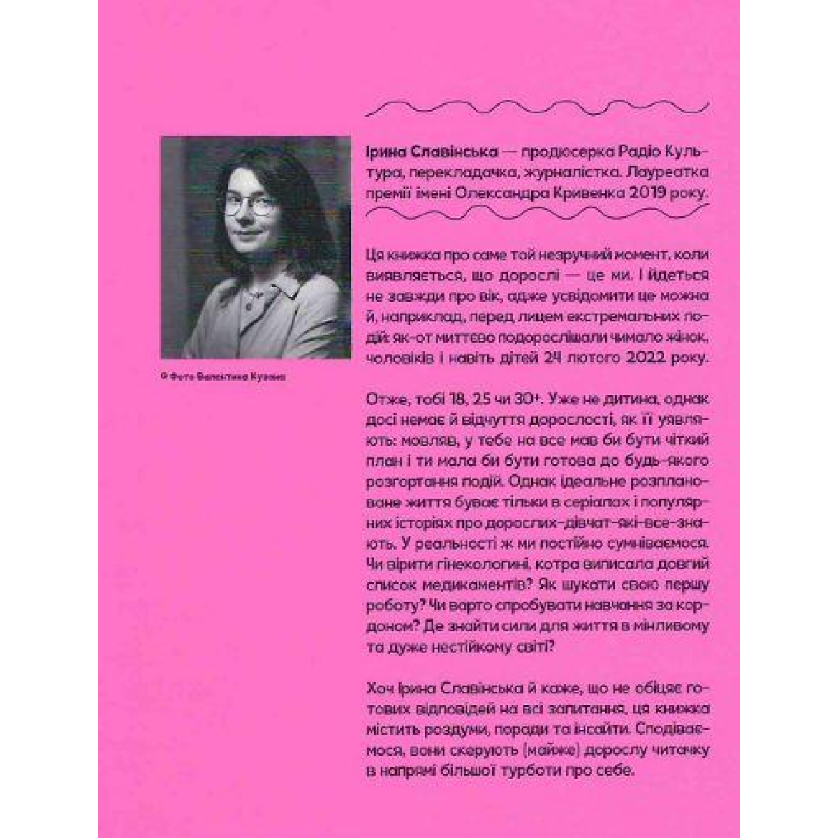 Хоча Ірина Славінська каже, що вона не обіцяє готових відповідей на всі питання, ця книга містить роздуми, поради та ідеї.