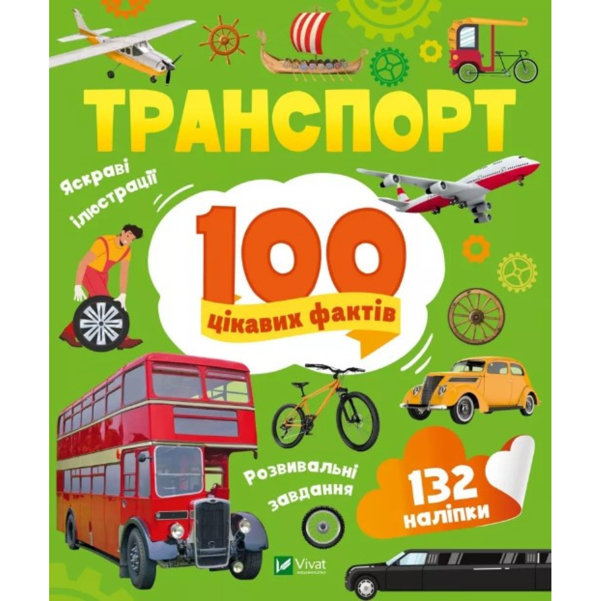 Книга 100 цікавих фактів. Транспорт + наліпки (українською мовою)