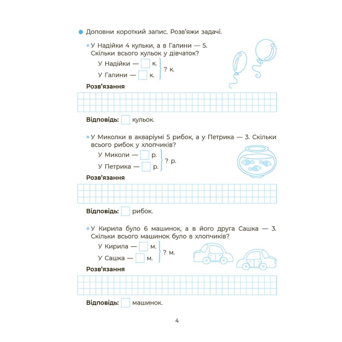 Книга для дітей Веселий тренажер. Вчуся розв`язувати задачі. 1-2 класи. Н. Ф. Юрченко