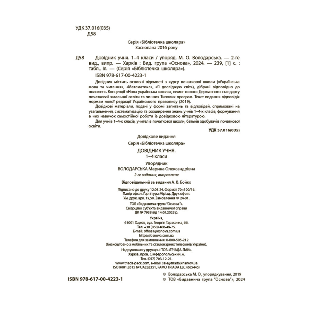 Довідник учня. 1-4 класи. Бібліотечка школяра. КДН027