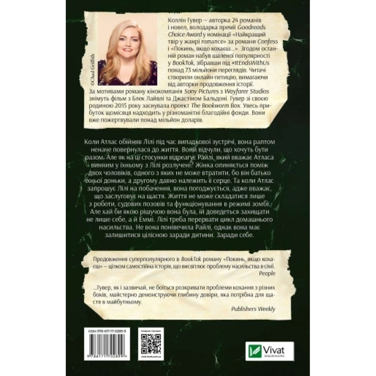 Здається, Лілі щойно вирвалася із жаху аб’юзивних відносин. Вона збирається почати все наново разом з Атласом — другом дитинства та своїм першим коханням. Але токсичні взаємини — болото, яке так і прагне затягнути назад, а тиран не відпустить слухняну і зручну жертву просто так.