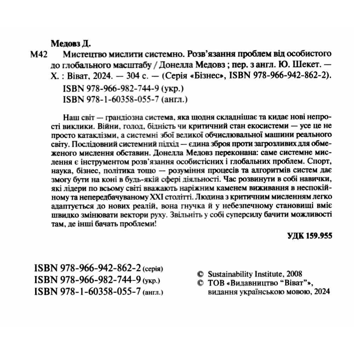 Книга Мистецтво мислити системно. Розв`язання проблем від особистого до глобального Медовз Донелла. Бізнес