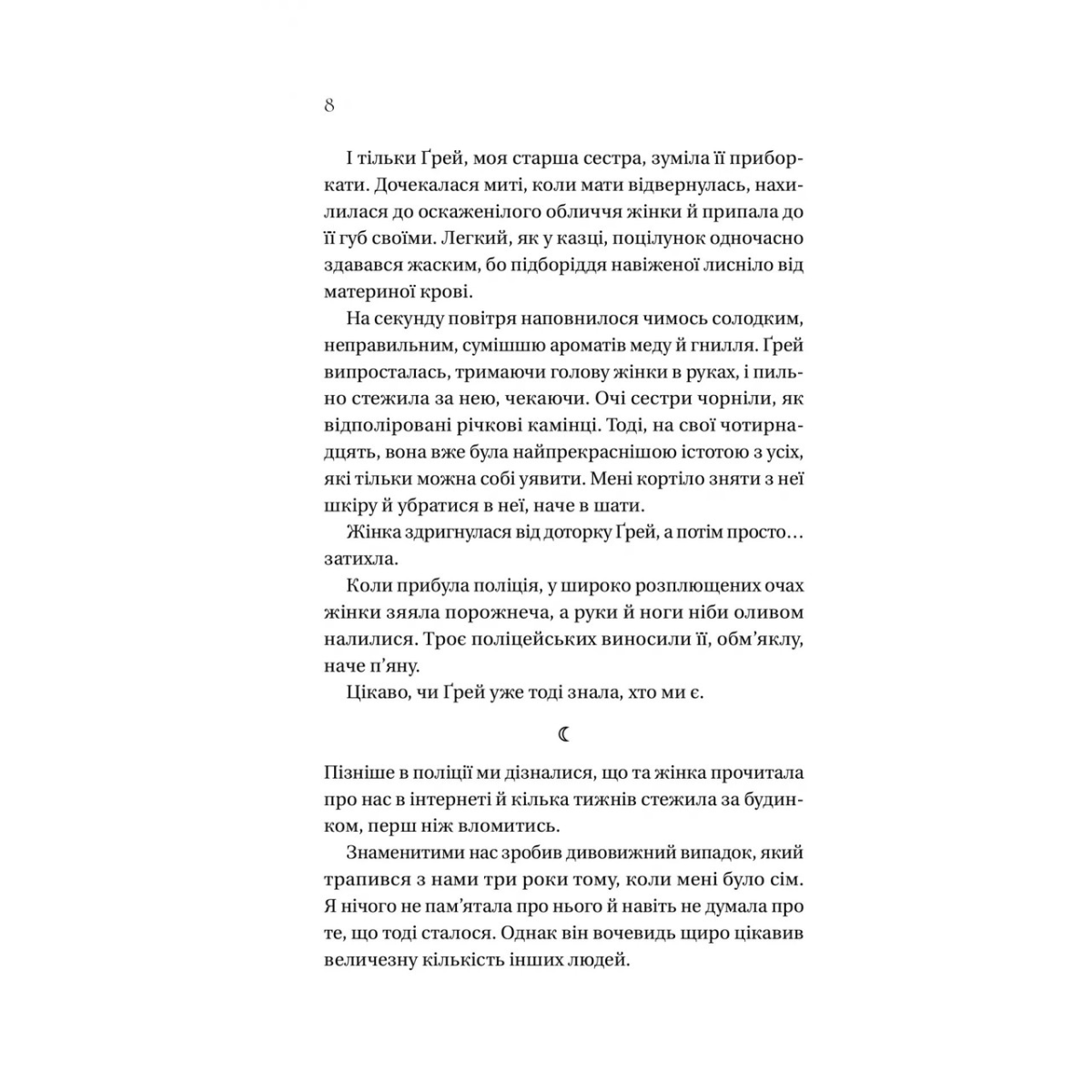 У світі повно монстрів, страшніших за тих, що жили в дитячих жахіттях. Сестри Голлоу — неймовірно вродливі, гламурні та лякаюче дивні. Навколо Ґрей, Віві та Айріс відбуваються темні й незрозумілі речі. Все почалося кілька років тому, коли дівчата зникли з вулиці Единбурга, а за місяць раптово повернулися. Сестри не можуть пригадати, що саме сталося, але це лишило у кожної з них однаковий слід у формі півмісяця під горлом. Вони разюче змінилися після того випадку — колись темнокосі блакитноокі сестрички тепер мали волосся молочного кольору та моторошні чорні очі. Дівчата мають неймовірний апетит, але не набирають вагу. Їхня холодна краса вражає і відлякує водночас. Де вони були? Що з ними сталося?