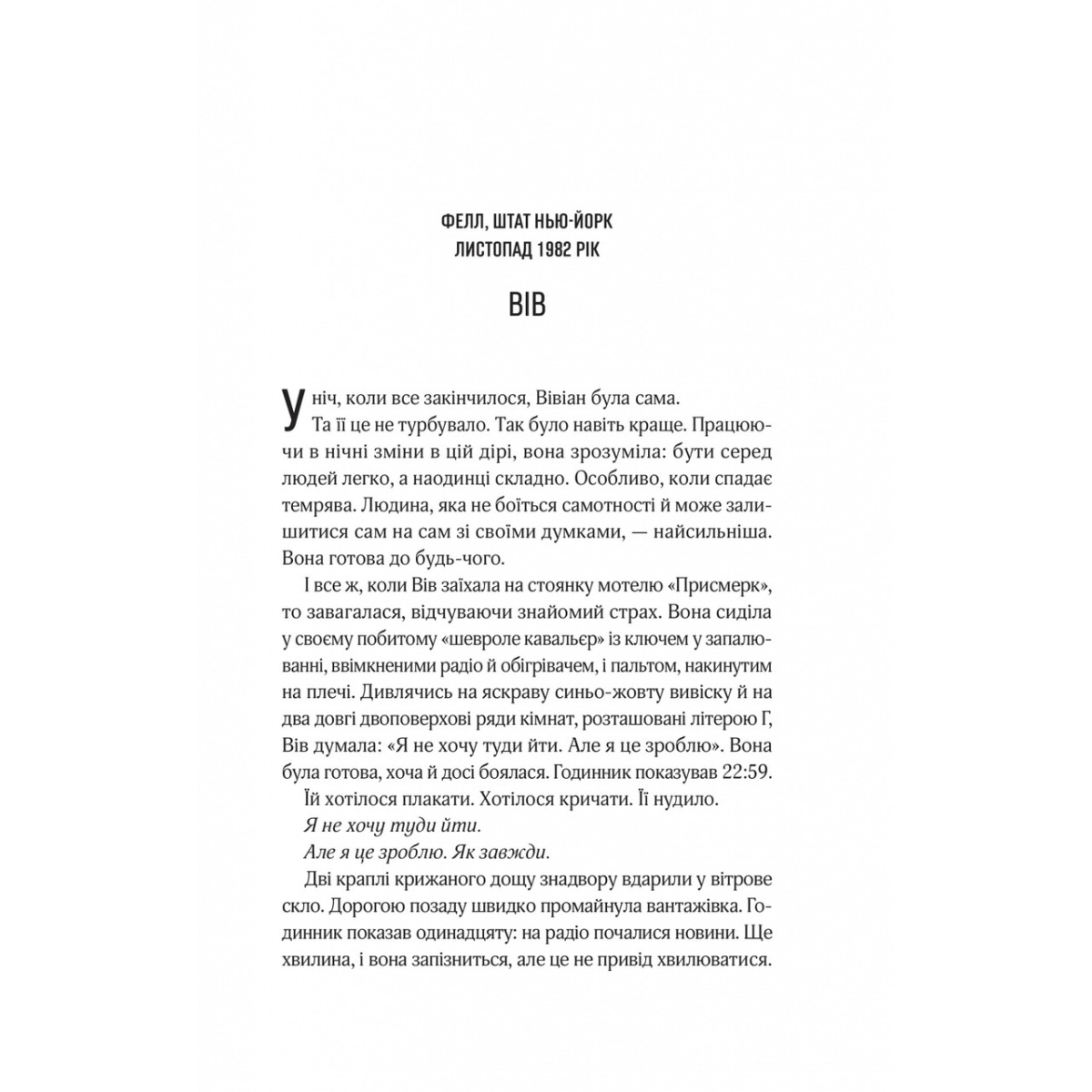Карлі Кірк часто думає про історію своєї родини — зокрема, про таємниче зникнення її тітки Вів, про яке всі мовчать. Тітка зникла у 80-х, іще до народження Карлі. І це було пов’язано з містечком Фелл. Карлі вирішує переїхати до Фелла й відвідати місце, де колись працювала тітка. Виявляється, ще з тих далеких часів мотель наче й не змінився. Ті ж будівлі, ті ж страхи, ті ж моторошні загадки. Незабаром Карлі опиняється в пастці тих самих таємниць, які згубили її тітку.