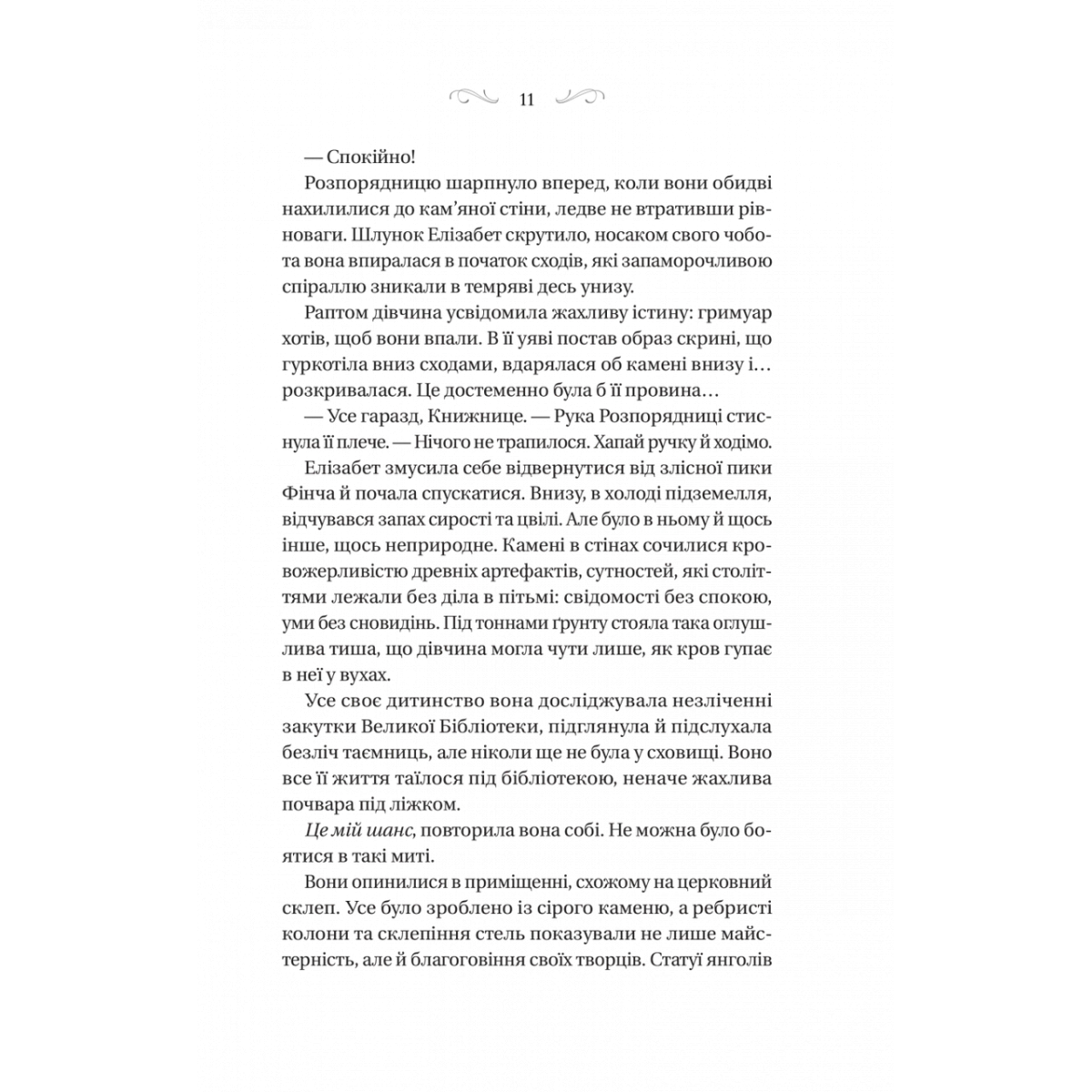 Усі чаклуни — злі. Елізабет знала цю істину відтоді, відколи пам’ятала себе. Адже вона зросла при одній з Великих Бібліотек Остерміру, серед витворів чаклунства — небезпечних магічних гримуарів, які шепочуться на полицях і брязкають залізними ланцюгами. Один необережний рух — і гримуар перетвориться на смертельного монстра з чорнила та шкіри.