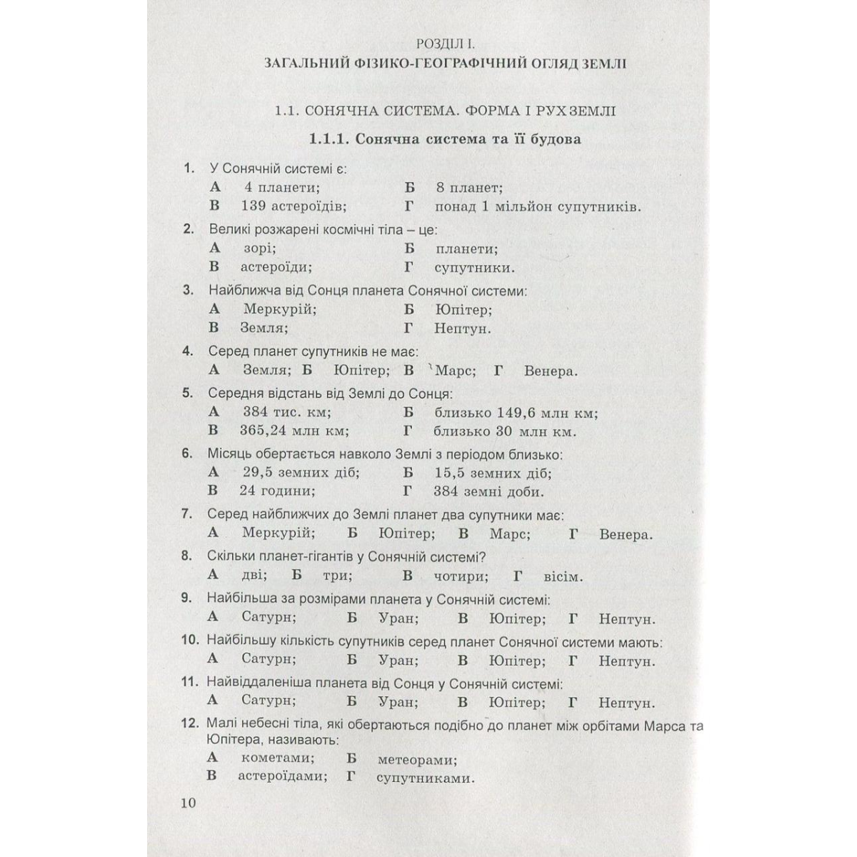 Збірник містить тести до усіх тем загальної та регіональної фізичної географії відповідно до чинної програми з географії для загальноосвітніх навчальних закладів та програми зовнішнього незалежного оцінювання. Посібник складається з трьох розділів, поділених на підрозділи, а ті своєю чергою – на теми. За структурою і змістом вони повністю відповідають посібникові Й. Р. Гілецького “Фізична географія: навчальні матеріали” (Тернопіль: Мандрівець, 2013).