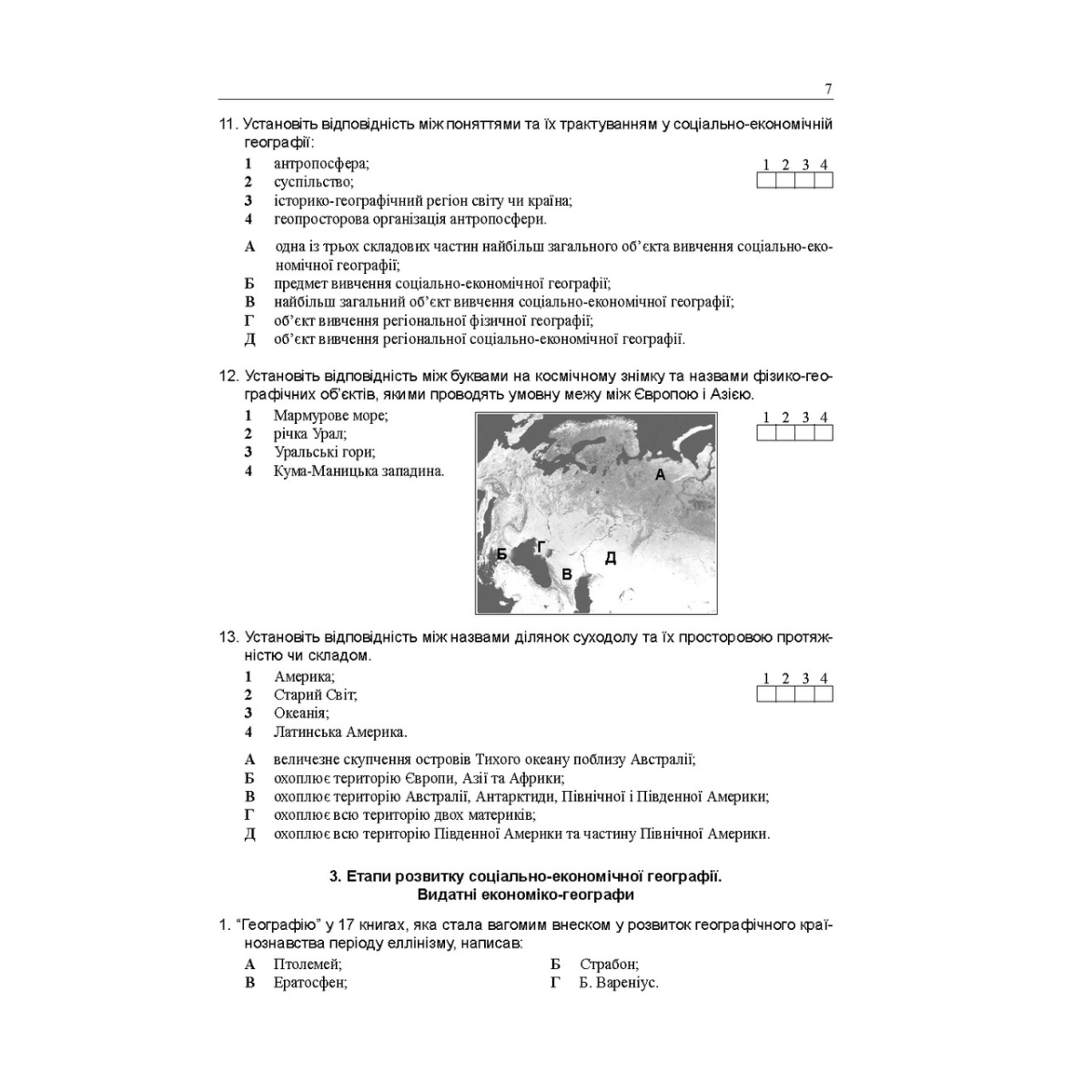 Збірник містить тести до всіх тем соціально-економічної географії світу для загальноосвітніх навчальних закладів, які відповідають програмі зовнішнього незалежного оцінювання.
