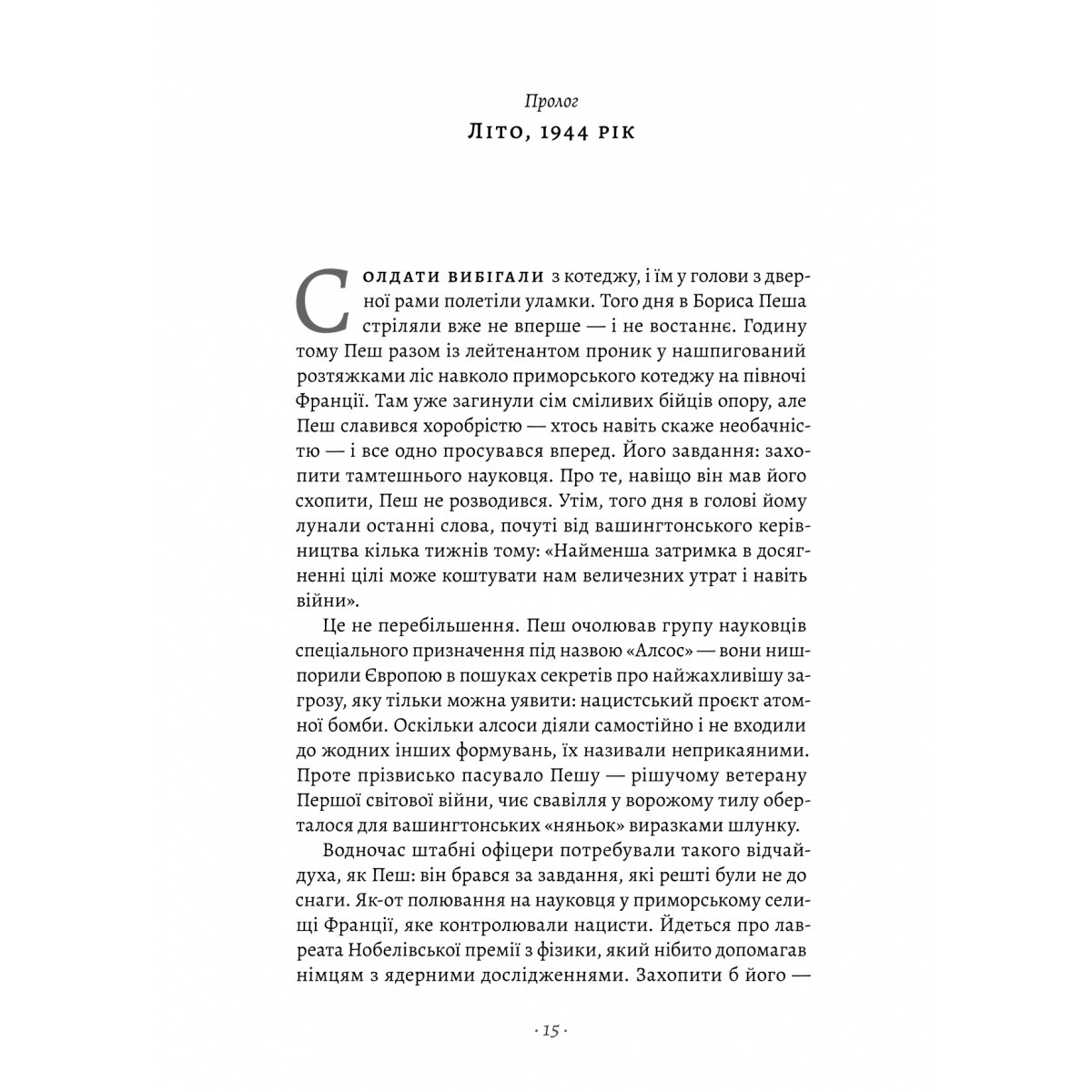 У розпалі роботи над створенням атомної бомби керівники Мангеттенського проєкту були стурбовані, дізнавшись, що нацистська Німеччина випереджає союзників у ядерних дослідженнях, а Гітлер міг змінити хід війни, маючи лише кілька кілограмів урану. Тому було зібрано групу науковців спеціального призначення «Алсос», яка шпигувала, саботувала і навіть вбивала членів страшного Уранового клубу нацистської Німеччини. Занурені в темний світ міжнародного шпигунства, ці вчені, солдати та прості люди відіграли життєво важливу роль у запобіганні одній з найпохмуріших сторінок в історії людства.