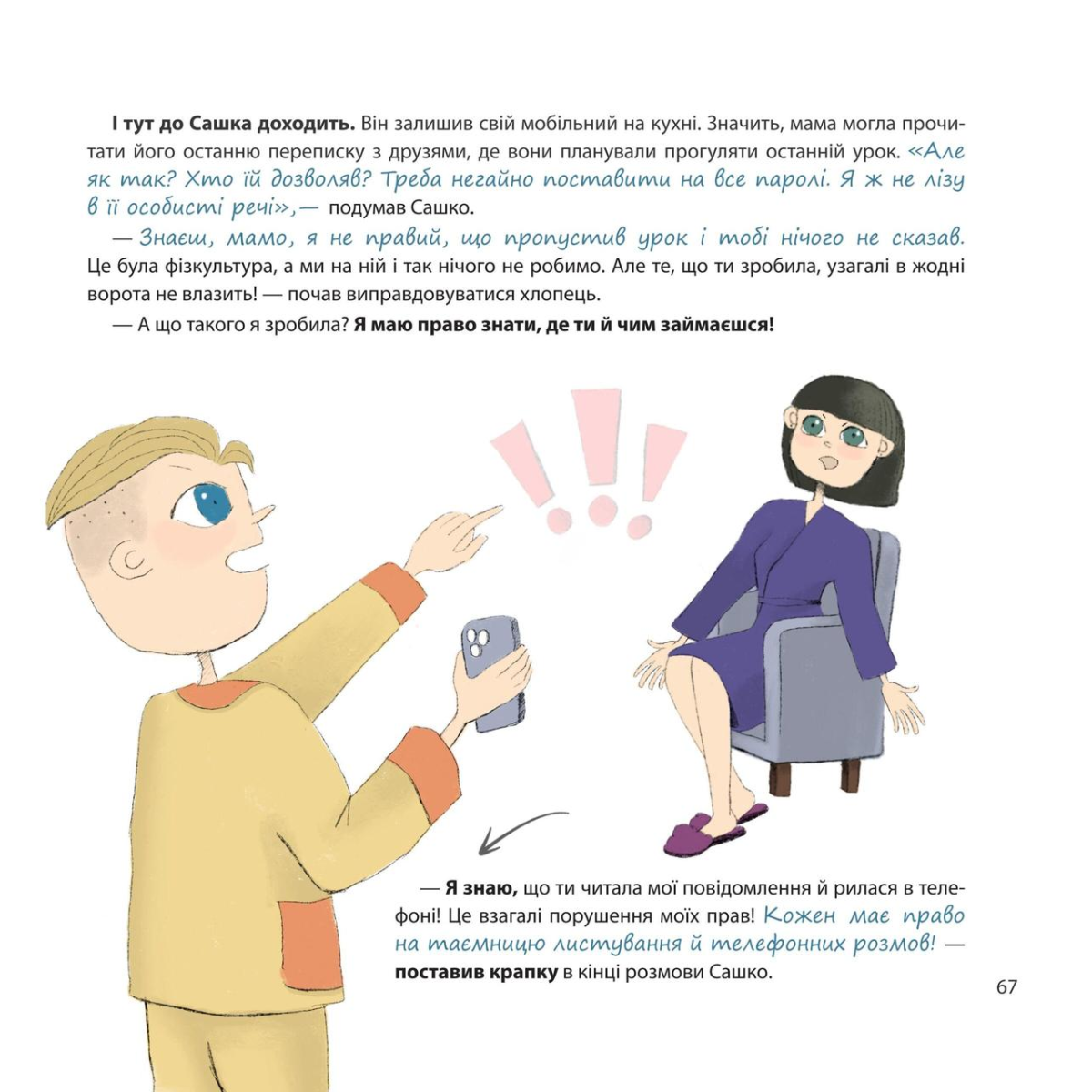 «Я маю право! : 50 простих відповідей на складні запитання» — унікальний довідник, де діти й дорослі — вчителі й батьки — знайдуть відповіді на важливі юридичні запитання, що можуть виникнути в повсякденному житті. Чи має право вчитель забрати в школяра телефон? Чи необхідні довідки про хвороби для допуску до занять? Як легально використовувати штучний інтелект під час навчання? Із якого віку підлітки мають право одружуватися? Це лише декілька прикладів проблемних запитань, на які дає відповіді авторка — Ольга Бондаренко.