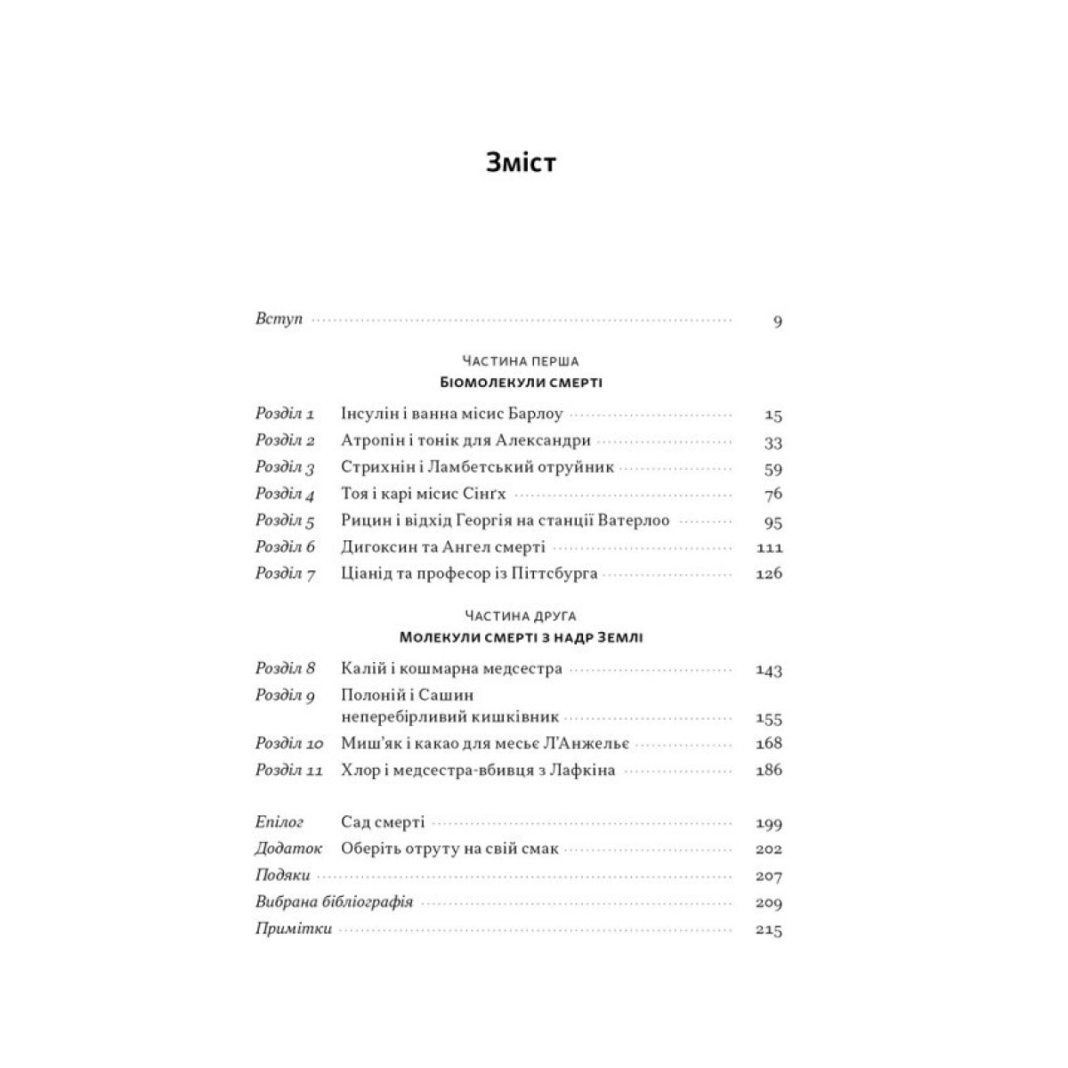 Отруєння завжди було популярним способом убивства — від шпигунських отрут до отруйних рослин. Бредбері аналізує дію одинадцяти страшних речовин, серед яких: